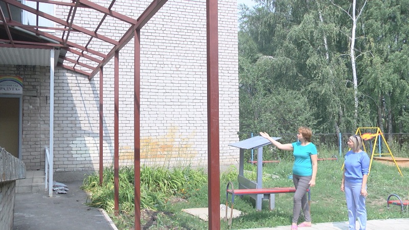 Наталья Романюк, старший воспитатель детского сада «Радуга» п. Октябрьский: «Это безопасность, в первую очередь. У нас маленькие дети. А в этом году мы набрали не просто двухлеток, а практически полуторагодовалых детей. И родители возят деток на колясках, на санках. Всё это теперь можно оставить здесь — под навесом не страшны ни снег, ни дожди, да и ходить теперь можно без опаски. Конечно, мы очень благодарны за такой широкий навес».