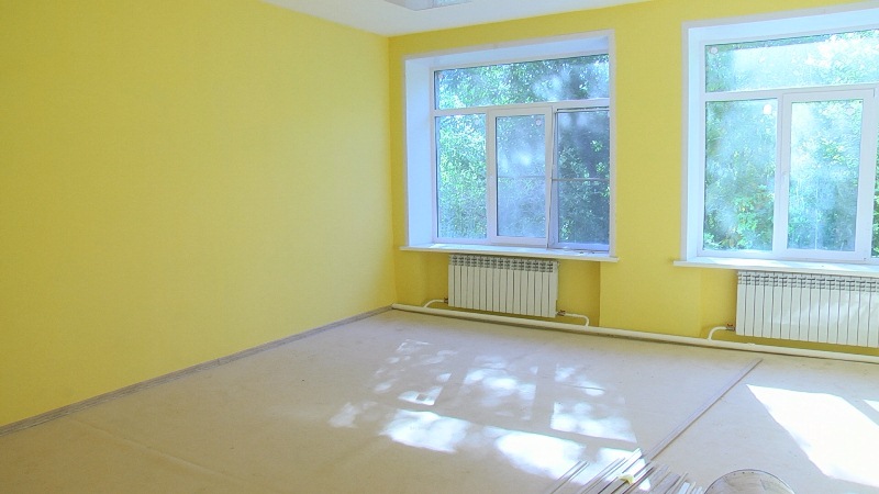 Просторную групповую комнату здесь планируют разделить на игровую и столовую зоны. В спальной разместить 15 кроваток — по числу воспитанников. Определили место и для занятий физкультурой. В ближайшем будущем здесь оборудуют просторные буфетную, прачечную и гладильную комнаты. Раздевалка, туалет — всё в строгом соответствии с требованиями СанПиНа.