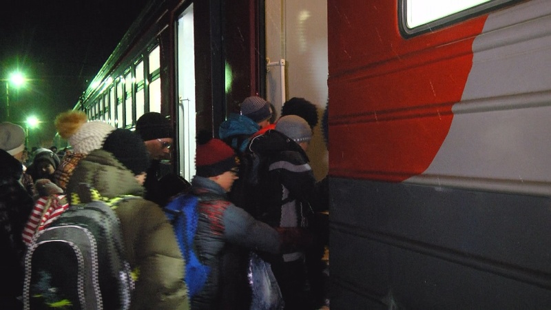 Георгиевка — Самара — Сызрань. По такому маршруту специальный электропоезд «Краеведческий экспресс» школьников из Георгиевки и Комсомольского в День героев Отечества повёз в специальную экскурсию в крупнейший город Самарской области, в Сызрань. Вместе с родителями и учителями ребят на железнодорожной платформе Георгиевка провожала и наша съёмочная группа.