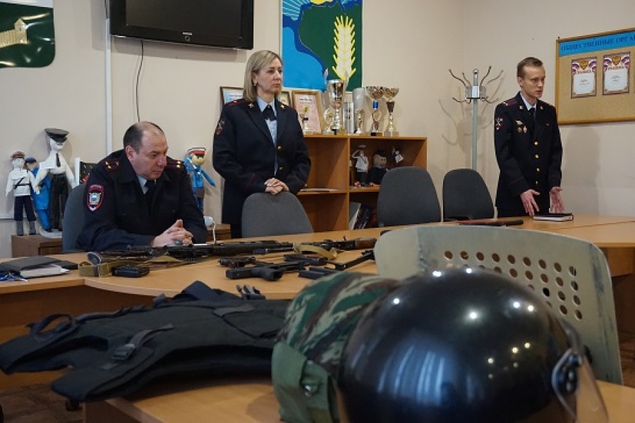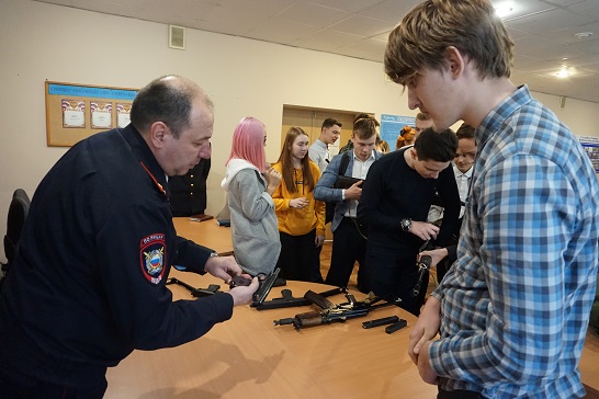 После лекции ребята получили возможность оружие подержать в руках, прицелиться и задать вопросы.