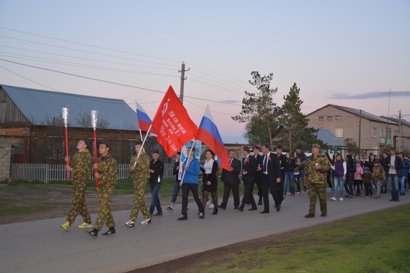 В ряды торжественной колонны в этот вечер встали бок о бок несколько поколений — от малышей до ветеранов. Десятки людей приготовились пронести по Домашке поминальные свечи в память о земляках, погибших в годы Великой Отечественной войны. Взяв старт у школы, колонна прошла по центральным улицам села. Уже в процессе шествия к факелоносцам присоединялись все новые участники, многие встречали поминальную колонну у своих домов. Головную часть процессии составляли школьники — юноши старших классов с факелами и флагами — они начали готовиться к этому дню задолго до юбилея Победы.